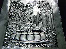 Repujado (Prata Boliviana - Latonagem) Vilarejo com fonte em 3D...