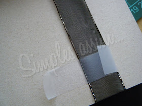 Usei uma fita de organza e uma fivela própria, quer dizer, para scrapbook (Não enferruja)...