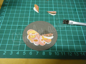 Cole o tecido no papel couchê... Marquei e cortei, fazendo com que o tecido "acabasse" exatamente junto com o papel...