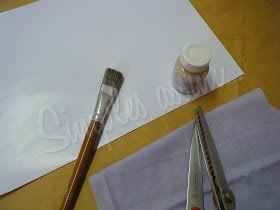 Você vai precisar de uma folha de papel couchê (Usei a de 85g/m²), cola permanente, um pincel macio e o tecido (Algodão - O mesmo que usamos para o patch no isopor)