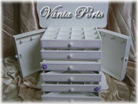 Esse é um armário para bijouterias teen. Branco e lilás.
