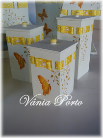 Fiz os cabides de arame e papel, depois pintei e decorei com borboletinhas e strass...