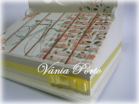 Arabesco em chipboard pintado, outro aplique também de madeira, além de uma florzinha aqui e outra ali...